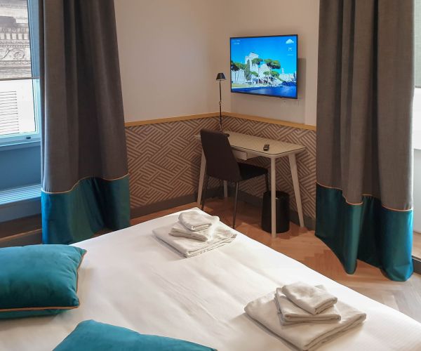 Per il Roma Five Suites, situato nei pressi di piazza Venezia, abbiamo installato le nostre Hotel TV da 49 pollici. L’installazione, avvenuta sia nelle stanze che nell’area bar/ristorante, consente alla struttura di raggiungere un duplice obiettivo. Da un lato condividere, nell’area comune, contenuti di interesse e ad alto impatto visivo, dall’altro presentare agli ospiti i servizi aggiuntivi e offrire la possibilità di prenotarli direttamente dalla propria camera.