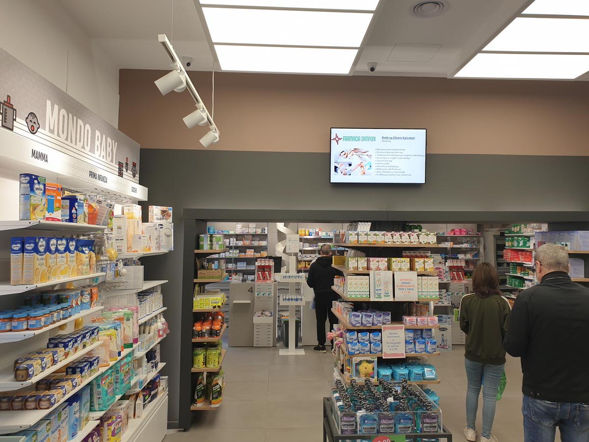 un monitor da 55" accoglie i clienti all'ingresso, intrattenendoli ed informandoli durante l'attesa in fila;